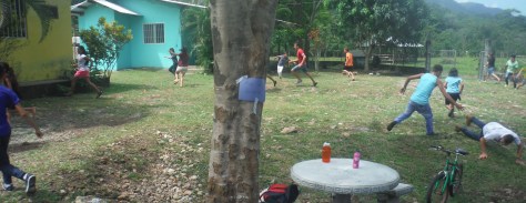 One of the next games on the day’s agenda was a fan-favorite that I introduced to them last year: Chinese freeze-tag! My husband Darwin and one of our 50-year-old local teachers (Reina) got in the mix as everyone was running wildly around our yard!