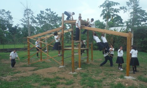 The large wooden play structure we had designed was finished a few weeks ago by Domingo, one of our faithful team members who is a local pastor in his 50s who serves with us as the Christian Leadership teacher, Carpentry Club leader, and elementary math teacher. We love the way it turned out, and the kids are all over it every chance they get! It has added a very fun and dynamic dimension to recess and lunch hour, and it supports our overall mission to restore broken youth spiritually, emotionally and physically for God’s glory.