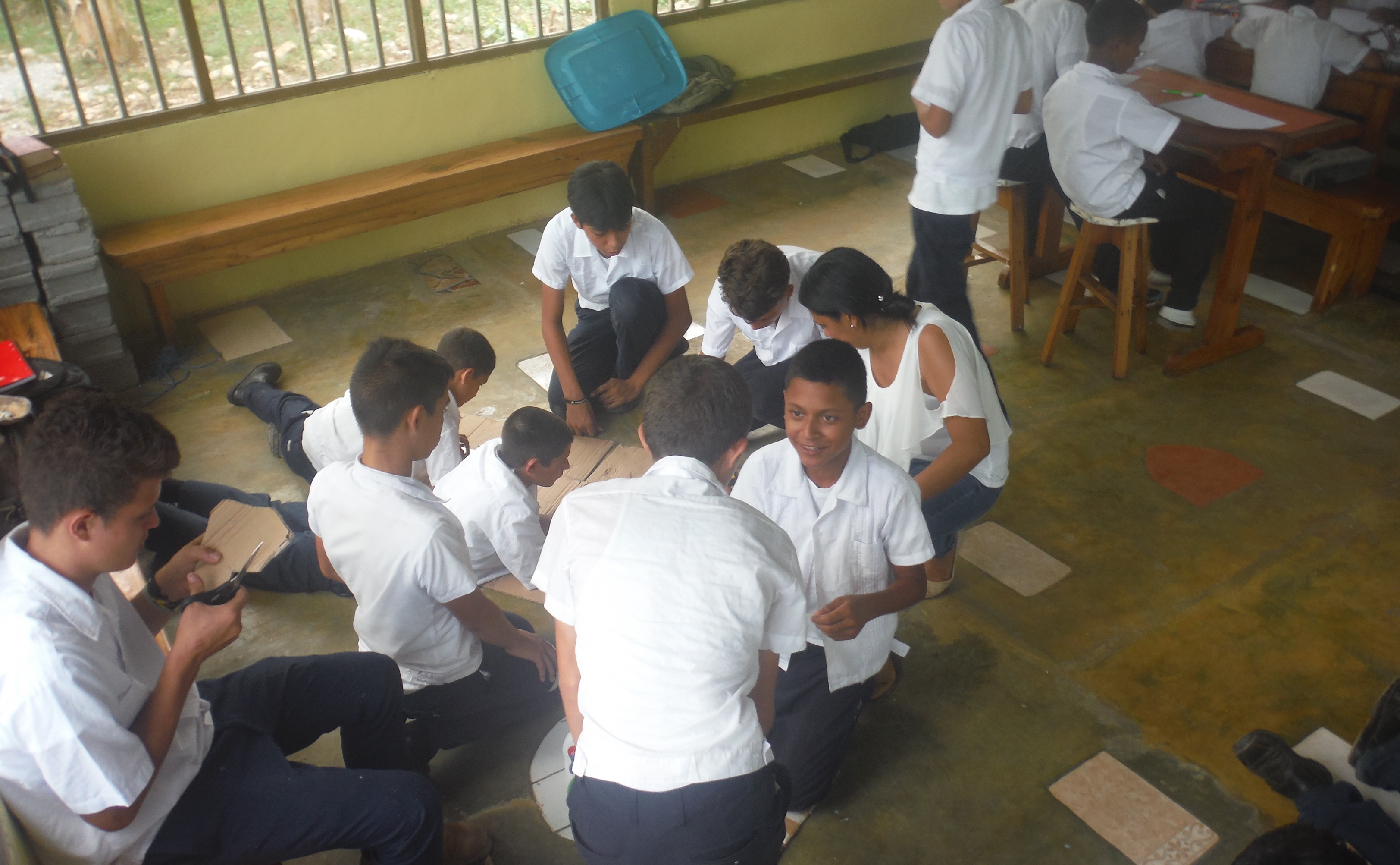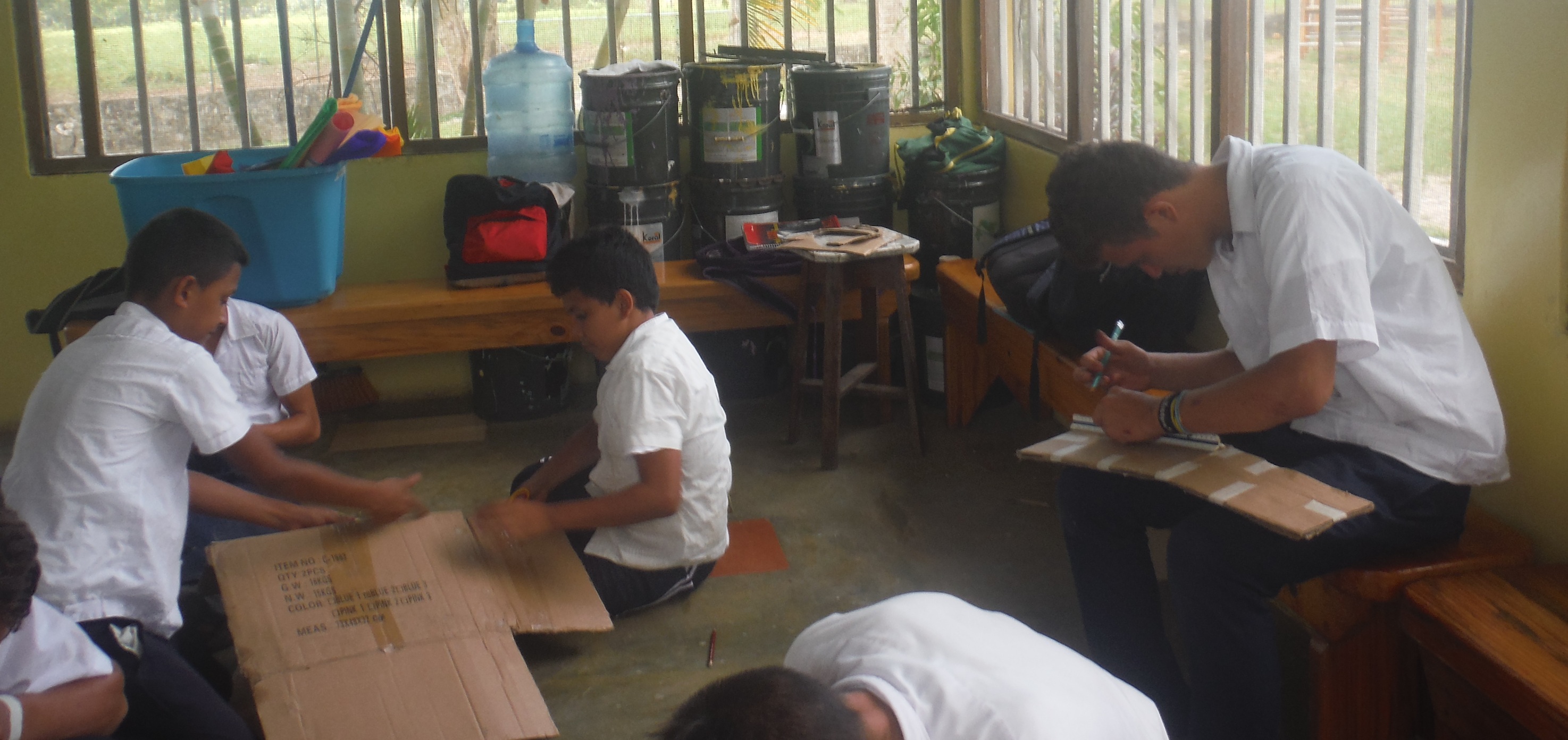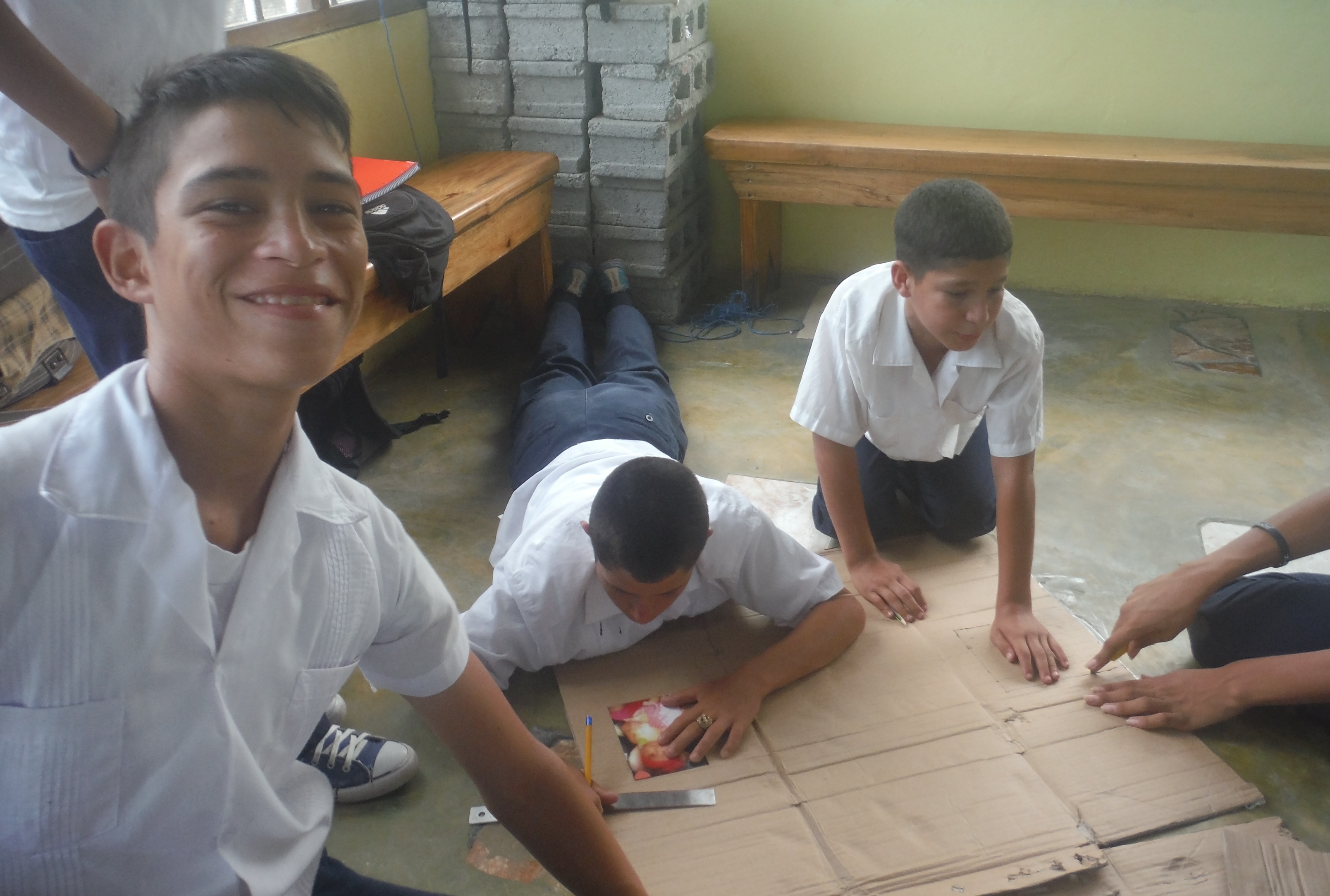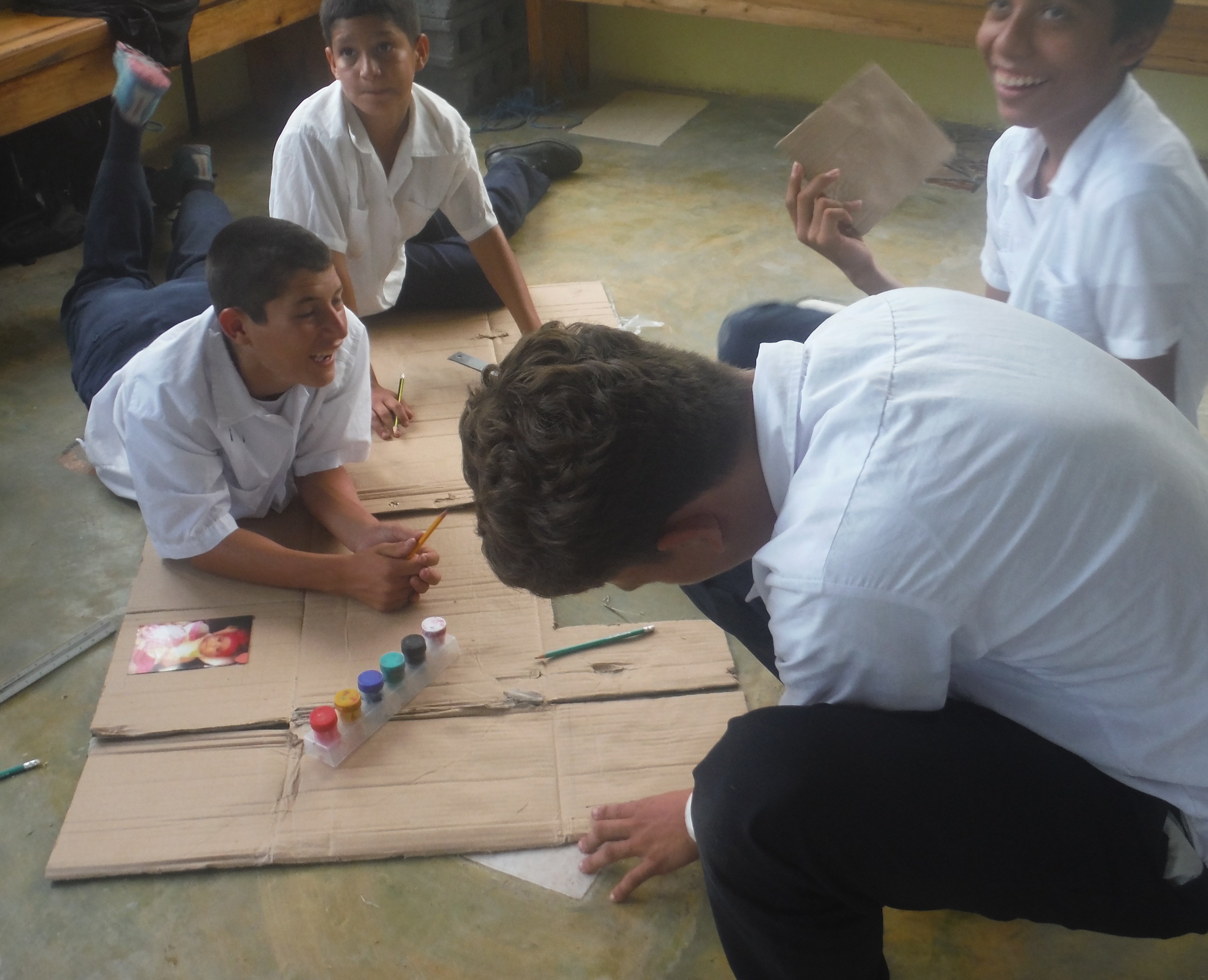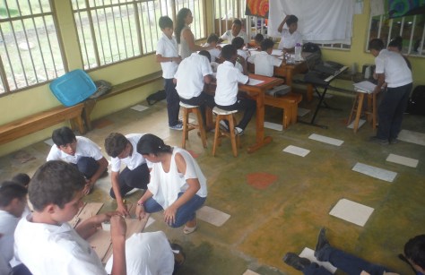 This is Charlie, one of our high school students who didn’t pass his grade with us last year but has valiantly come back again to give it a second try (after much persuasion), and this year he is one of our more consistent and joyful students. He was baptized last year, and he has become actively involved in the search for God, both at the Living Waters Ranch and in his personal life with his family.A year or two ago I don’t think we could have ever imagined that our dining room would become so multi-purpose! Sometimes several times daily we move around the tables and benches to transform the space into whatever we need it to be. We use this room for our twice-weekly Bible study, 5th and 6th grade homeschool, worship time, academic support group, dance club, the new geography class, and now group art lessons!This young man on the left is Eduardo, a 14-year-old who joined us at the beginning of the Honduran school year in January. He had dropped out of the local public high school last year and recently experienced a bout of depression/discouragement and came dangerously close to dropping out of our program as well. Darwin, the teachers and I have all had productive one-on-one conversations with him over the last several weeks to encourage him to continue seeking God’s will for his life and to stay put at the Living Waters Ranch so that he can keep growing, and after a recent visit Darwin paid to his house to talk with his mom he has experienced a change for the better and is now participating more fully and seems to be genuinely happy and engaged.