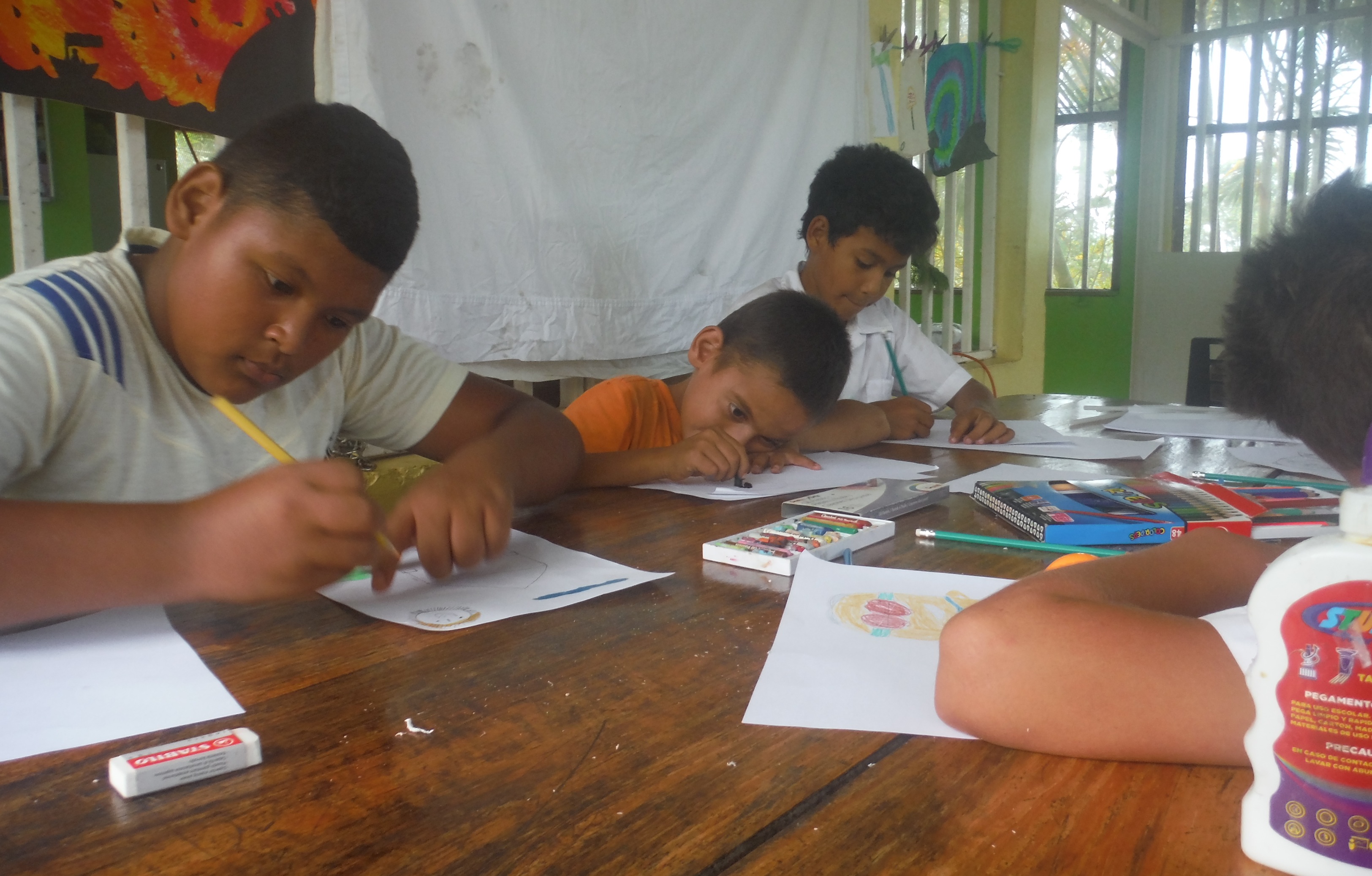 Our littler/less mature male students (and sons!) were at this long wooden table as they experimented with crayons, oils pastels and paints. Most public (and even some private) schools in Honduras do not have art supplies for students, and it is uncommon to find these kinds of basic enrichment activities in most Honduran homes, so for many children/youth the act of taking time to draw, paint and be creative is a rare treat and can go a long way towards restoring and developing them for God’s glory.