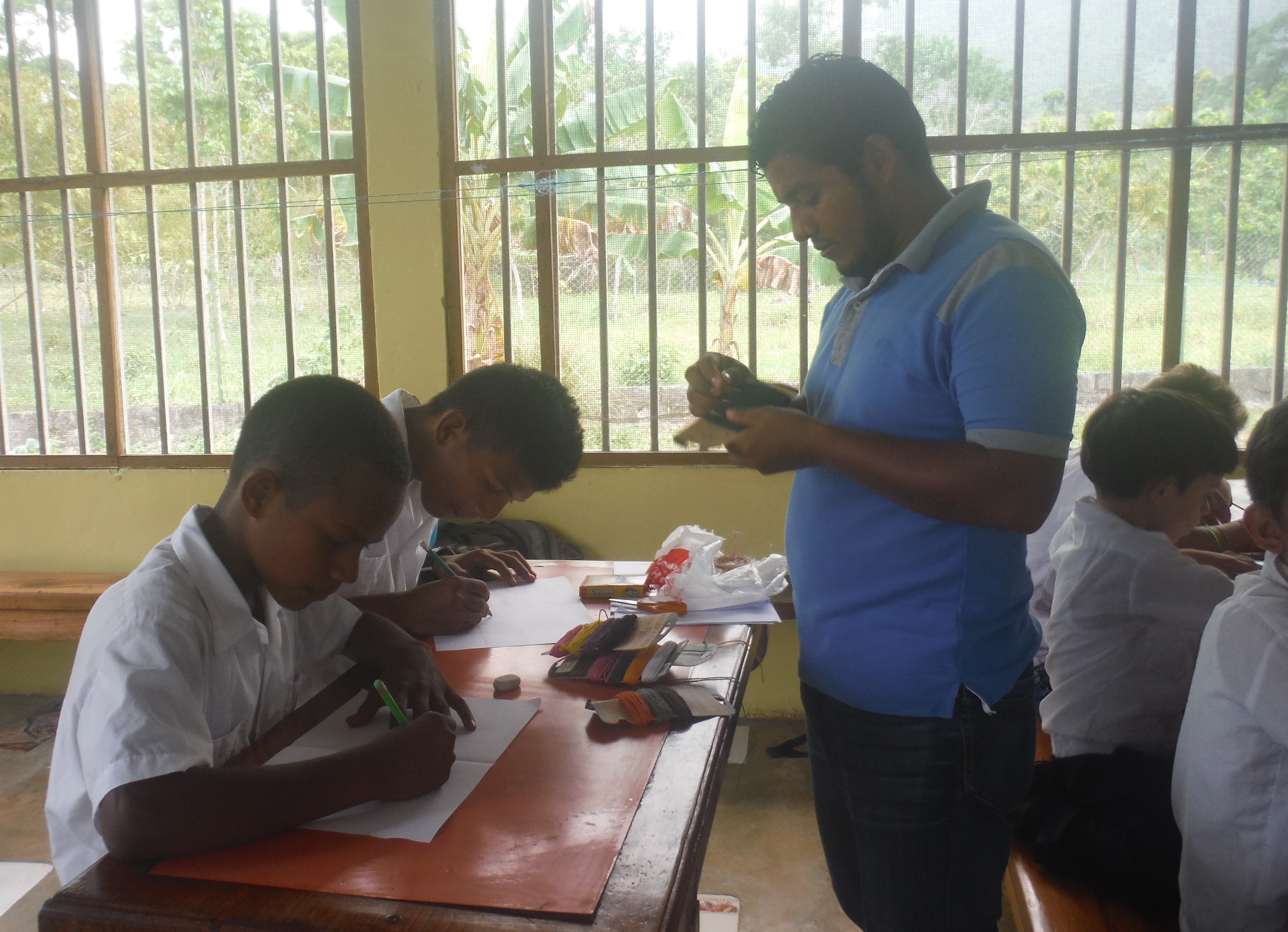 After Bible study, prayer groups, and group geography class in the ‘movie theater’ (the students called it that because we used a projector to show large images and maps on the wall, something we had never done before because we just purchased the projector a few days ago), all of our students divided up into two groups: the girls with Darwin for choir class (I participated as a very naughty student in the choir, and the girls loved it), and all the boys in our large dining room for art class with the rest of the teachers.