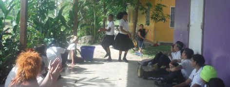 Thus, we invented our three-week-long intensive Speech/Communications class (a more in-depth version of the one-day workshop I gave last year), and thus far we’ve seen many breakthroughs in even our shyest of students. The class atmosphere is light and fun, and the youth are encouraged to participate openly without shame. In addition to playing many interactive games, a good portion of each class is dedicated to sitting in a large circle as a certain theme is presented (it could be something from the Bible, everyday life, etc) and each student — in their own timing — stands up and talks freely for a minute or so on said topic. (This is the only activity I can recall from my own high school speech class, and I remember that it greatly helped me overcome my own fear of public speaking.) The speaker is instructed to create and maintain eye contact with each member of the audience (which is a new concept for the majority of them, as they’re used to staring at their own feet or up at the ceiling), and the audience is instructed to maintain open body posture and not break eye contact with the speaker (another struggle, as respectfully listening to speakers is not generally a strong point in Honduran culture.)