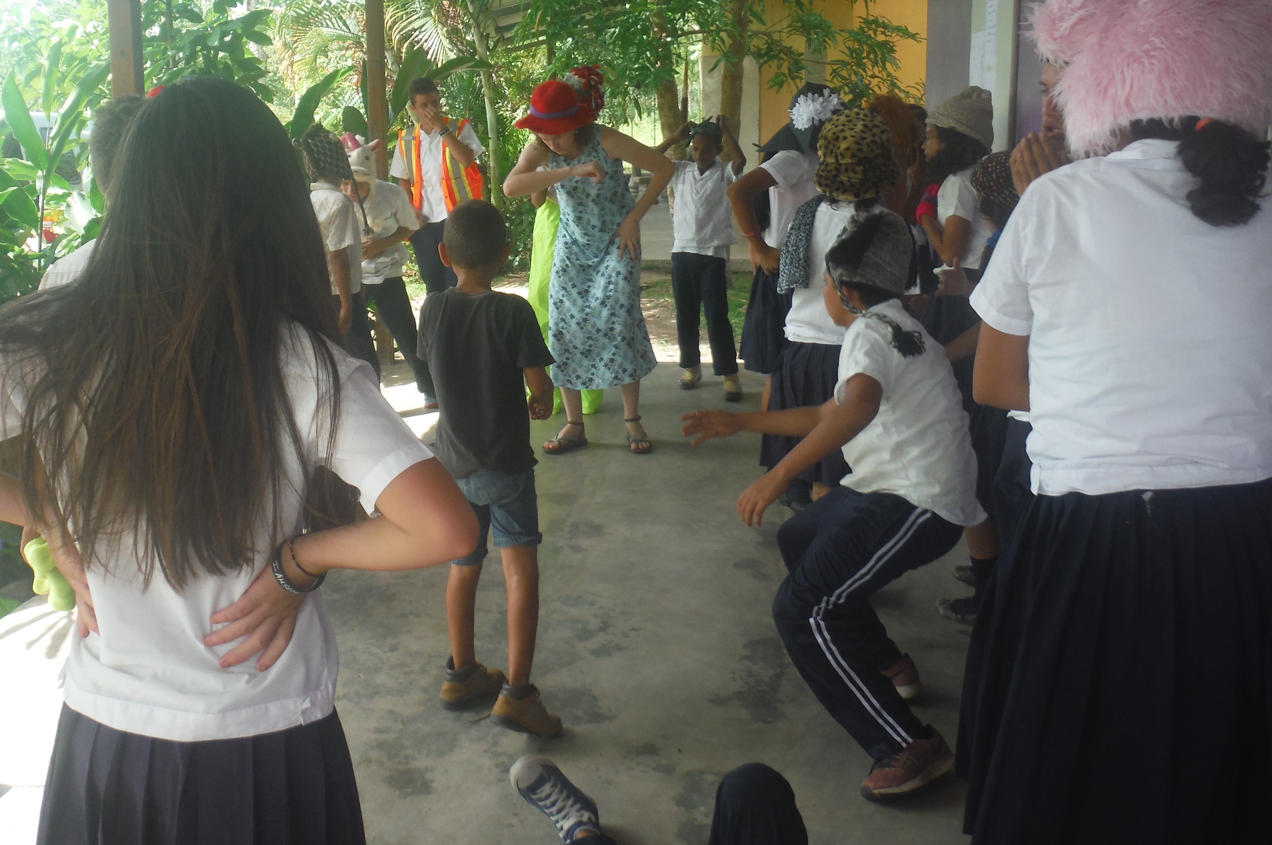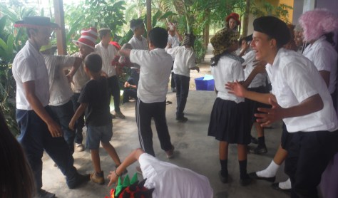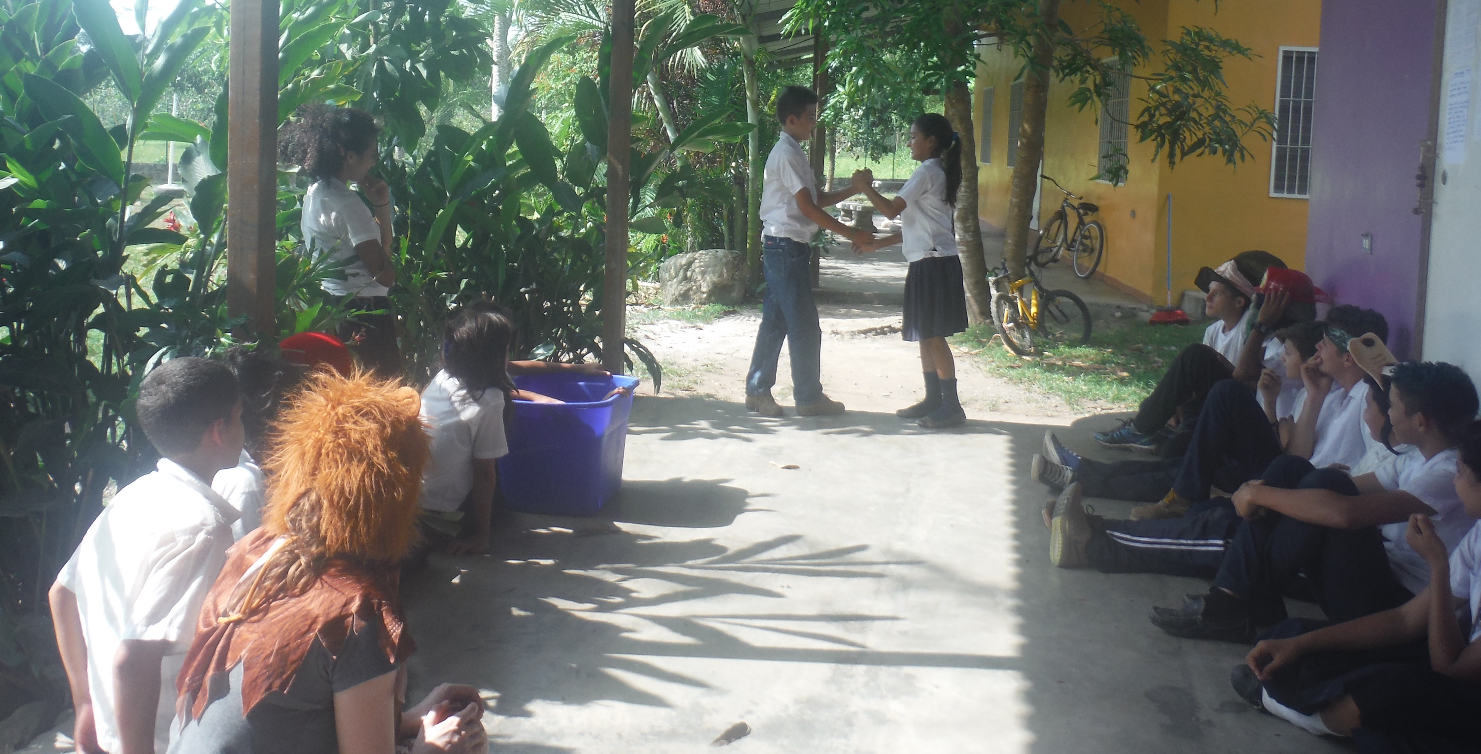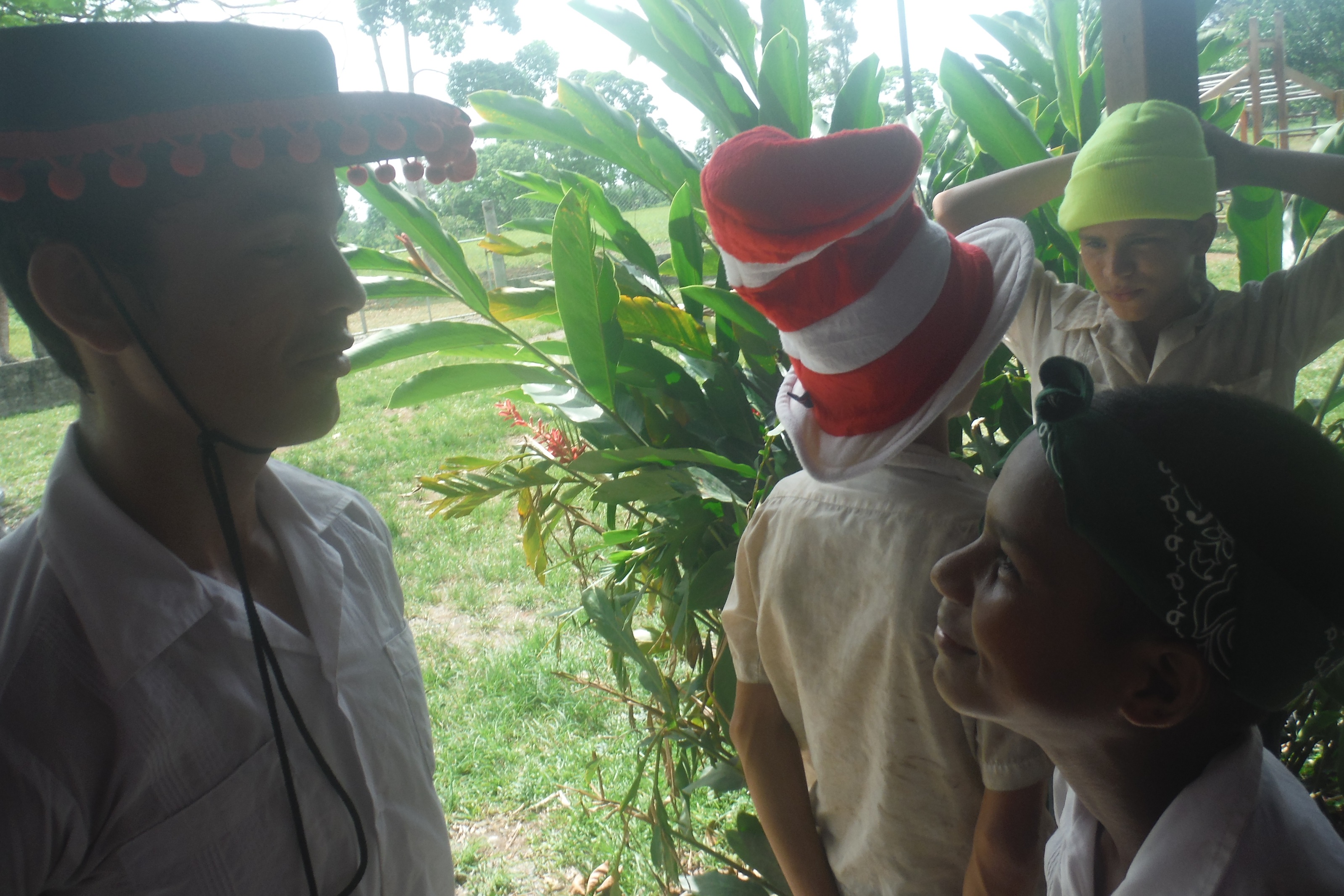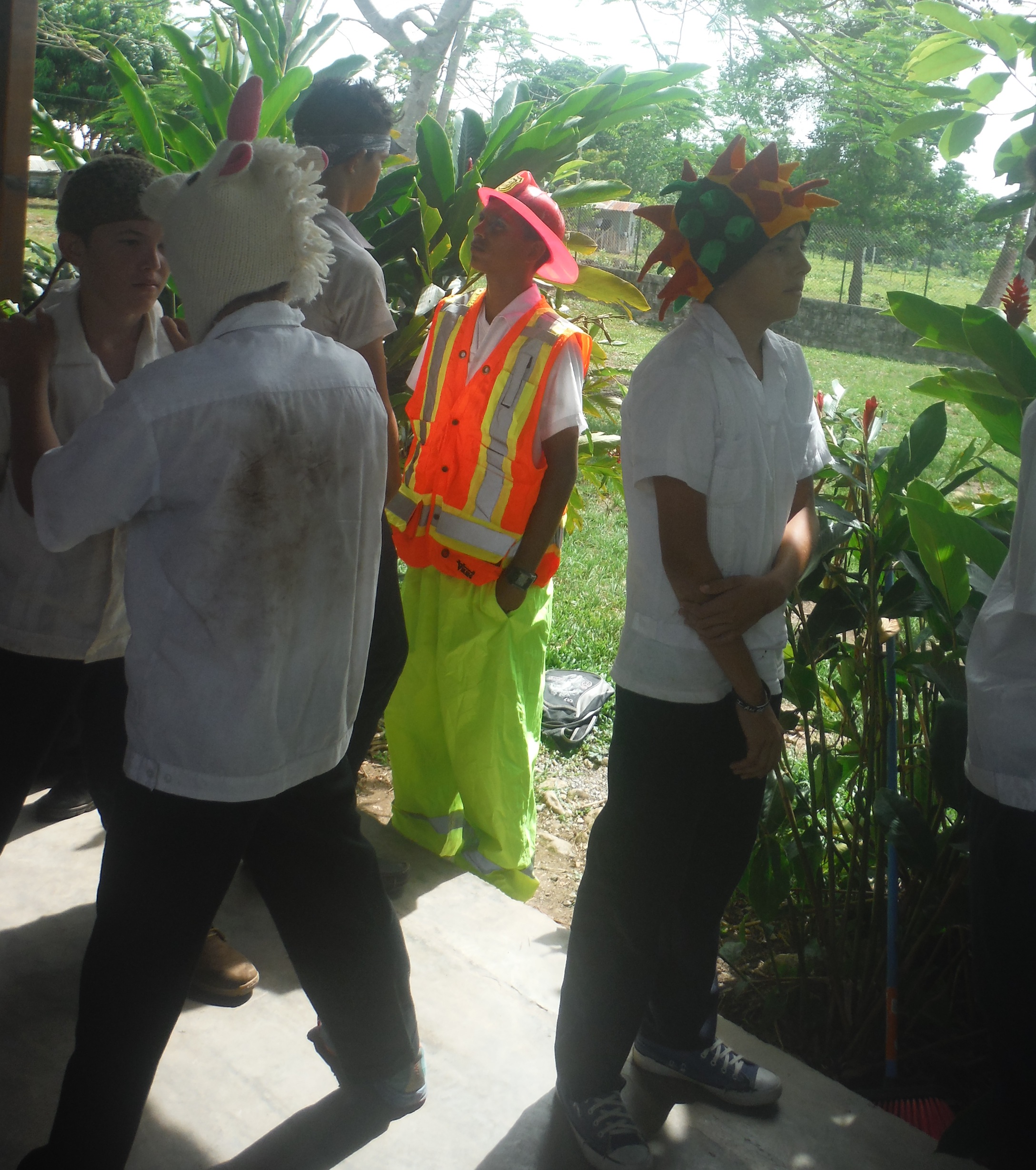 Costumes, healthy physical touch, eye contact and God’s love — welcome to our twice-weekly Speech/Communications class! As we’ve reached our mid-year point in our discipleship-based community homeschool program at the Living Waters Ranch in rural Honduras, we’ve introduced several new classes. One such class is a dynamic, sometimes impromptu class I’m teaching our oldest students — roughly 25 teens grades 5th-8th who come from (and many of whom are still in) marginalized situations.