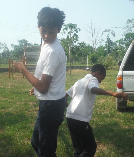 Darwin is a very passionate music teacher, and he firmly believes that God can utilize music to restore and renew the souls of broken children for His glory. He oftentimes takes the students outdoors to play in the shade of some large tree on our rural property, and he tends to incorporate prayer and Scripture-reading into the class. The photos shown below were taken on one such occasion.