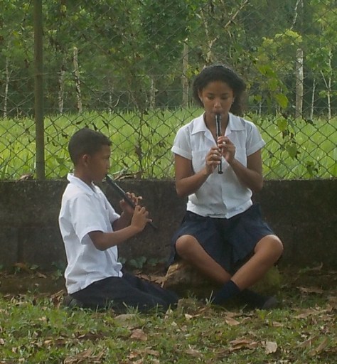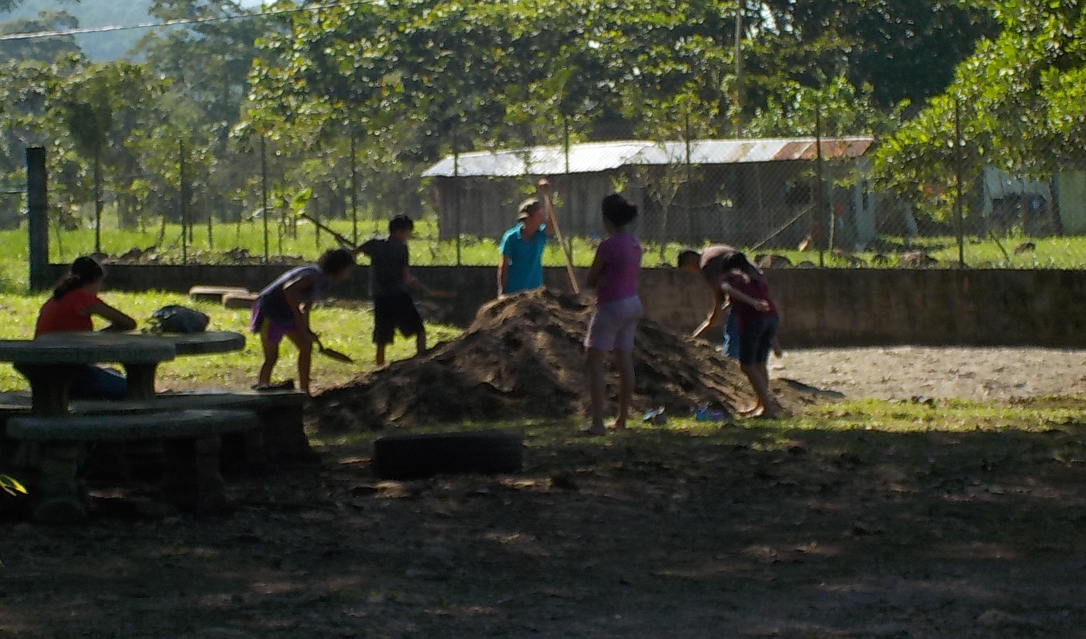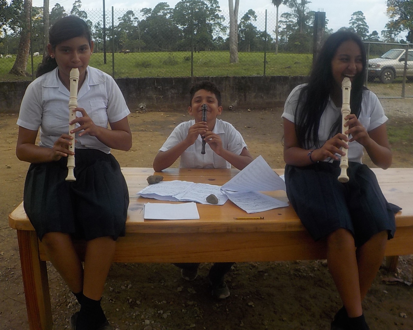 The classes imparted at the Living Waters Ranch are not confined to normal classroom walls: we oftentimes teach outdoors, go on prayer walks with our students, and interact with the beautiful Honduran habitat around our buildings as part of the youth’s integral learning experience.This is Miss Ligia’s English as a second language class. Everyone got the giggles and tried to hide their faces when I entered with the camera!Nobody wanted to show their face!When I got close to her with the camera, she got the giggles! What a beautiful smile!Now back outside with the beginners’ recorder class on the porch!This is our new Christian psychologist who is multi-talented! In addition to helping greatly in the integral psychological/spiritual healing of our youth in Christ, she has also been instrumental teaching in the classroom, leading a group of teen girls in twice-weekly prayer time and freely sharing her God-given talents through various outlets.One of our local Honduran missionaries has a great passion to pair organic agriculture with small-group Christian discipleship, so several of these agriculture/discipleship classes are given throughout the week to the 60 youth in our program who desire to participate. In these photos our 16-year-old foster son Brayan is working with a local teen to dig a 12-foot-deep hole to receive the waste from the pig pen we are building. These activities cultivate work ethic, perseverance and strength of character in our teens in addition to a deepened love of God’s Word.