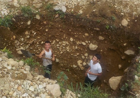 They’ve been working on this pit for weeks — one rock at a time!Two of our local teachers/missionaries work alongside of our students to cultivate the land organically as they learn more about their Creator and how to care for His creation.This is the little plot our kids have been working so hard on. They’ve planted plantains and banana trees here.
