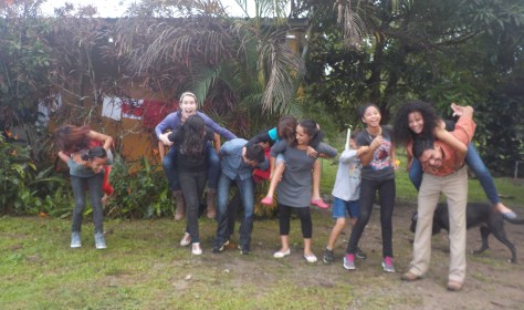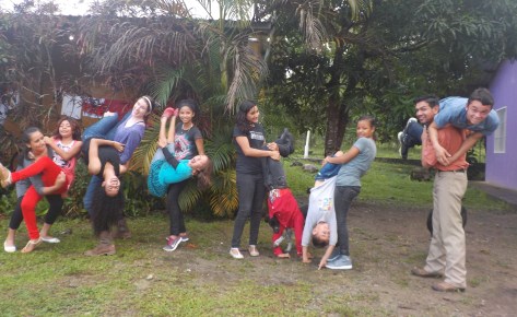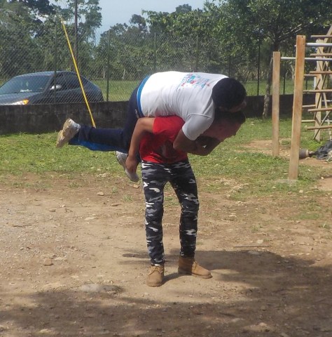 This is Geraldina (Sandra’s mom) in the process of the “backpack” position with her teammate Jackeline, one of our foster daughters. Two of our other daughters (Josselyn and Gaby) are in the background.