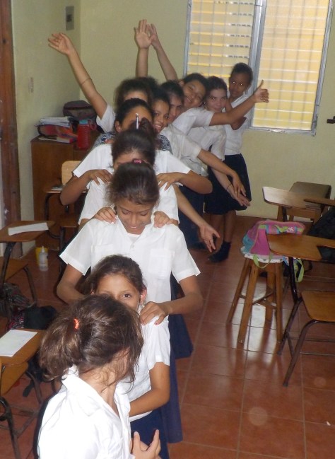 This is a group of teens in our school during one of my P.E. classes recently. We oftentimes design wacky, team-building exercises that leave everyone not only sweating but also laughing! (One of the main goals behind this is to break down barriers of distrust, pride, racism and bullying in order to fully live out Christ’s call to love our neighbor as ourselves.)
