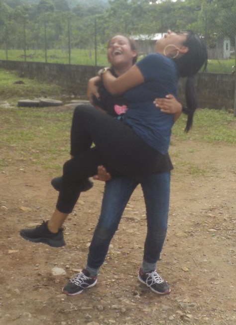 And, the best part of all, is that our teachers who serve as local Honduran missionaries participate right alongside of our foster children and students! 34-year-old Geraldina, Sandra’s mom, who serves in the community kitchen and general cleaning activities (because she hasn’t yet learned to read and write), had finished all of her duties early on Friday, so we invited her to participate right alongside of everyone else. She sent her daughter to run home and bring her some comfortable clothes to ‘play’ in (she was wearing a dress), and literally for the first time in her life she played. After a childhood (and early adulthood) of intense suffering, poverty, abuse and rejection, the Lord is restoring her even in an area as innocent (and oftentimes overlooked) as fun, healthy touch and intense, gut-wrenching laughter. She was laughing perhaps harder than anyone else — and this from a woman who used to be too timid to greet people and had never received hugs before she began working with us earlier this year (and now she receives several daily)!