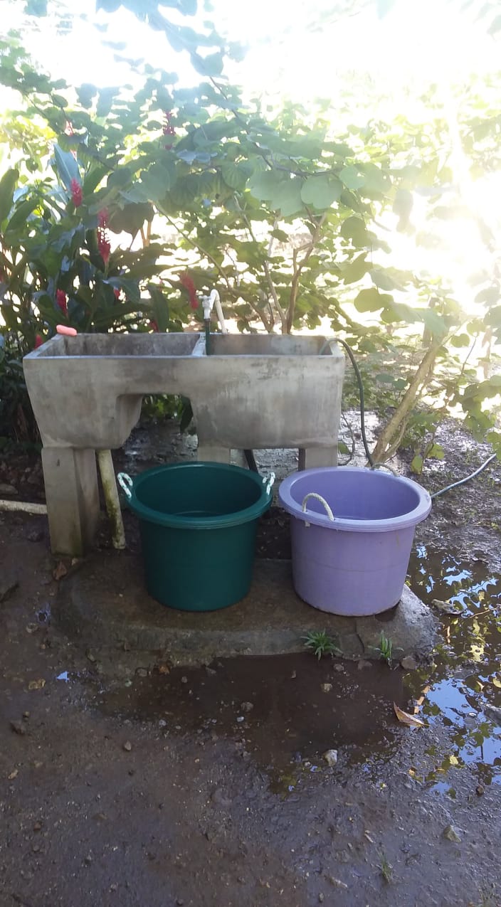 This is our ‘pila’, the local Spanish word that describes this type of outdoor washing station used for cleaning clothes and even for bathing. (Some people prefer to bathe standing next to the ‘pila’ using bowls of water instead of bathing in a shower.)