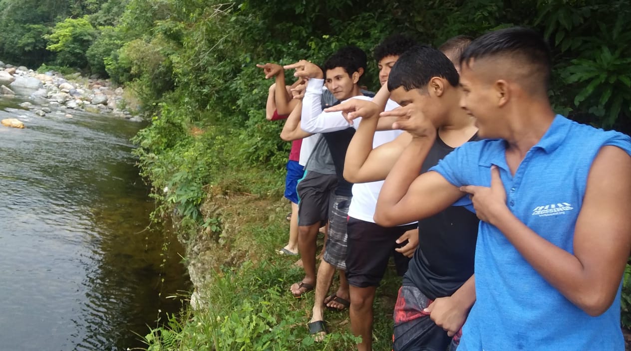 Here is Darwin’s group of younger teen boys toying with the idea of jumping off the ledge into the river to begin class…