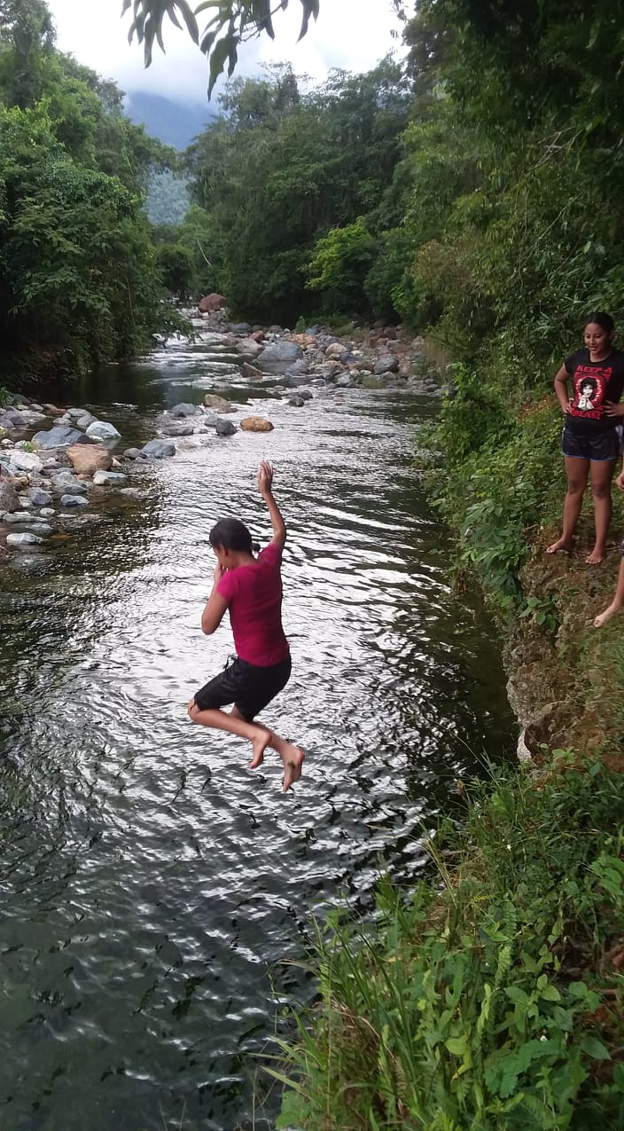 My husband Darwin is a talented swimmer (self-taught) and now leads several weekly swimming classes for our students in a local river a short walk from our ministry property. This photo shows his group of older teen boys enjoying flexing their muscles.