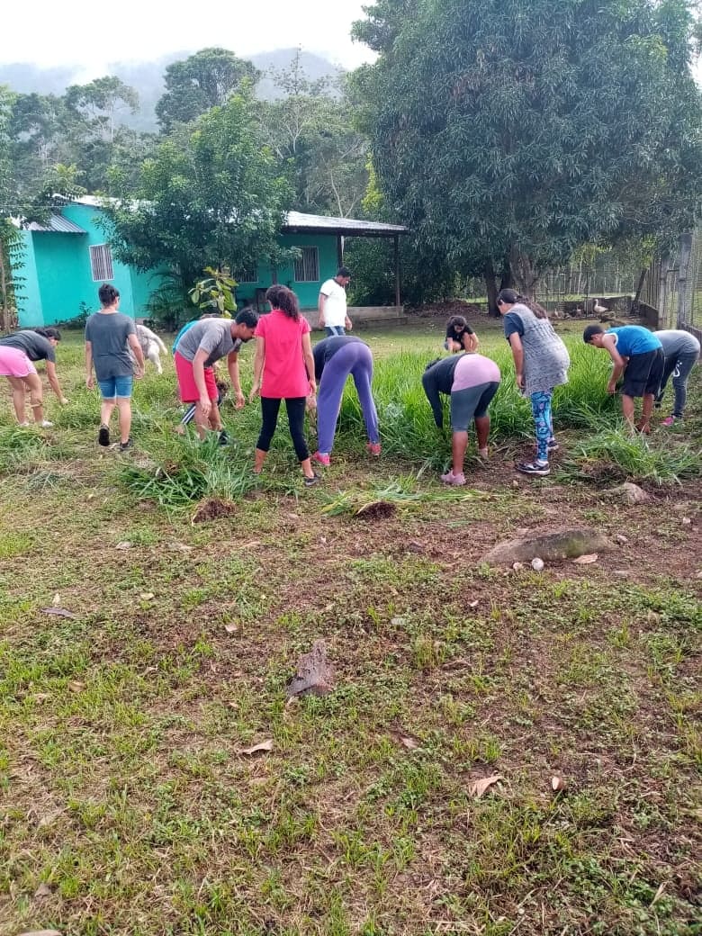 In rural Honduras there are always many weeds to be pulled up! In January after P.E. class one day we dedicated time as a team with our staff to tidy up our ministry grounds’ front lawn. Our foster kids were there to help too!