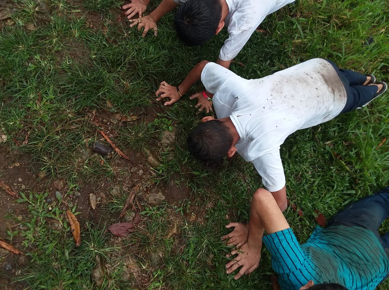 Our 24-year-old Christian psychologist (red shirt) didn’t know what she was getting into when she decided to join the ‘narrow path’ group! Next to her (white shirt) is one of our teen foster daughters who likewise chose the difficult journey. Many of the girls in their knee-length uniform skirt finished the challenge with scuffed and even bloody knees. Several cried out of desperation as the journey of shame extended close to an hour and they wondered when it would end. Our teachers finished completely bathed in sweat and with dirt all over their clothes. It definitely was the more difficult path!