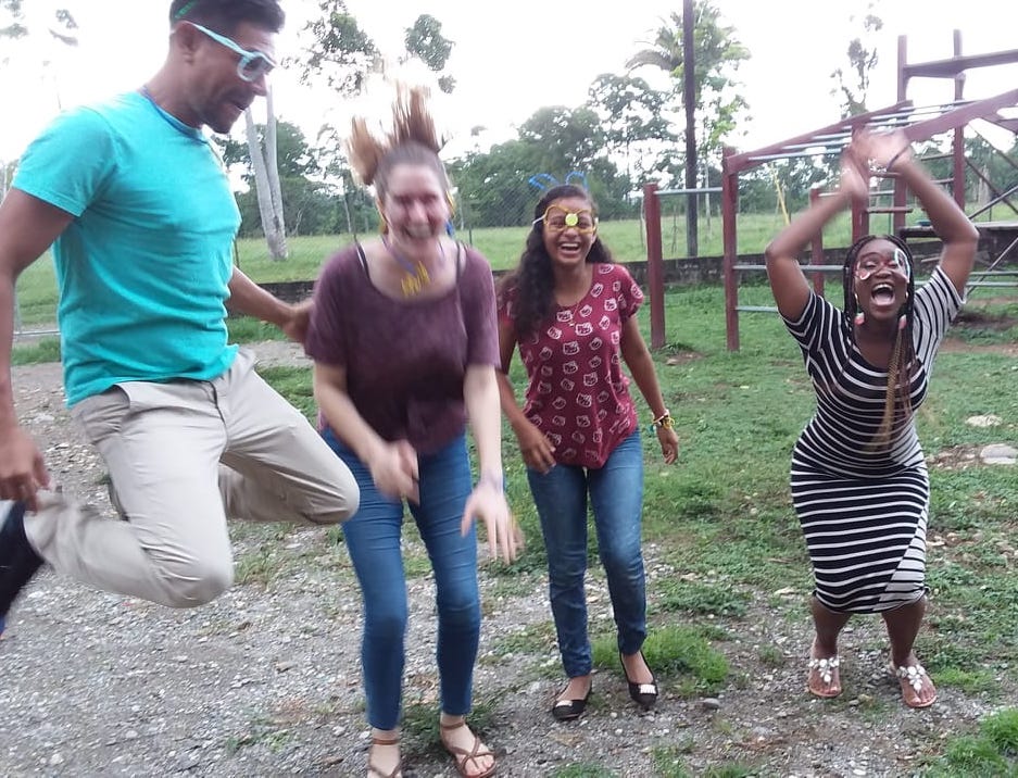 Here are two of our beloved local missionary-teachers participating in a recent game of blindfolded Chinese freeze tag alongside of our students. (One is a lawyer by profession and the other is a trained beautician, but both have been called by God to lay down their lives and traditional plans in order to love, teach and disciple the next generation of Hondurans for God’s glory.)
