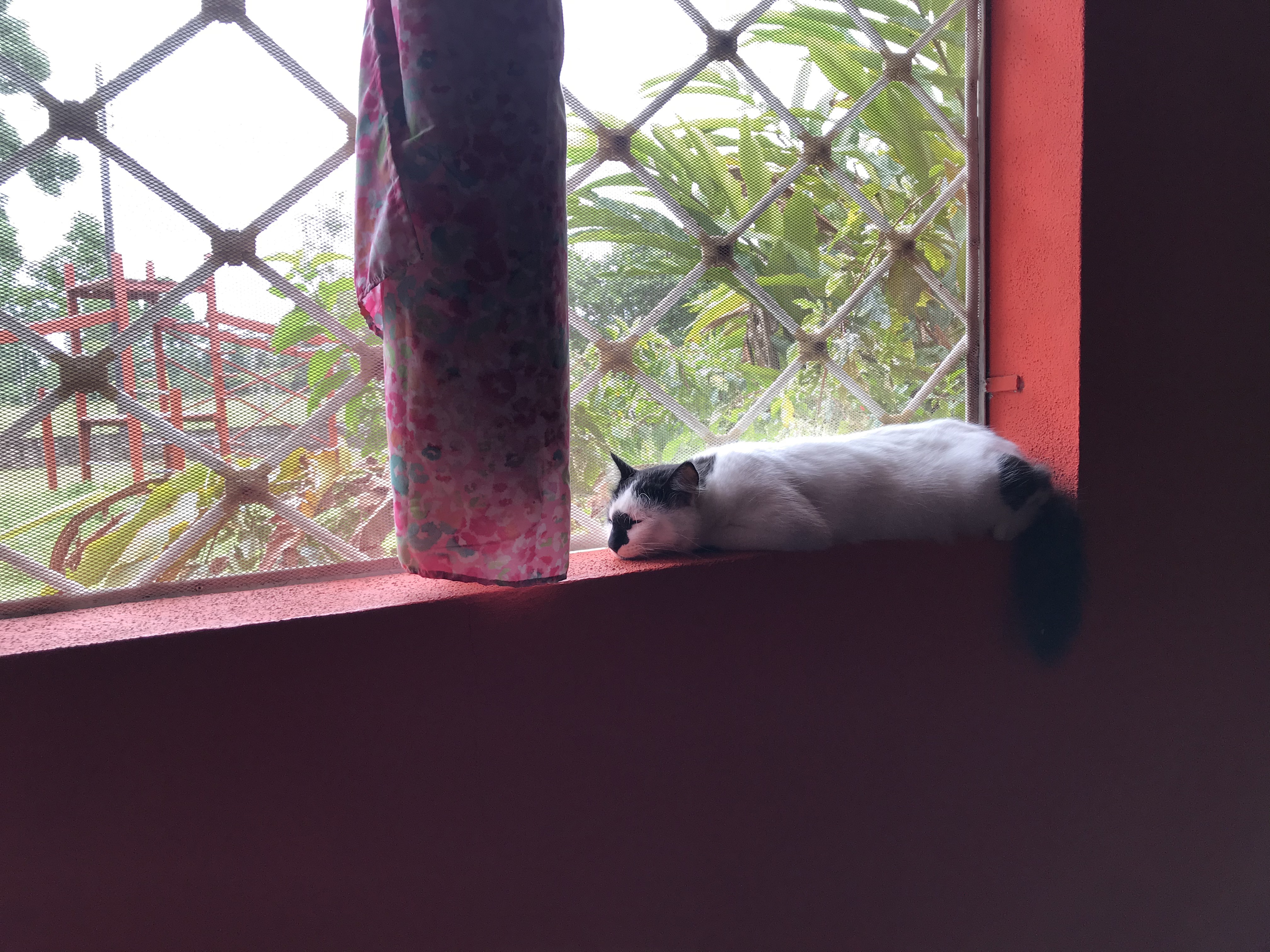 This is one of our three rescue cats lounging in our kitchen windowsill.