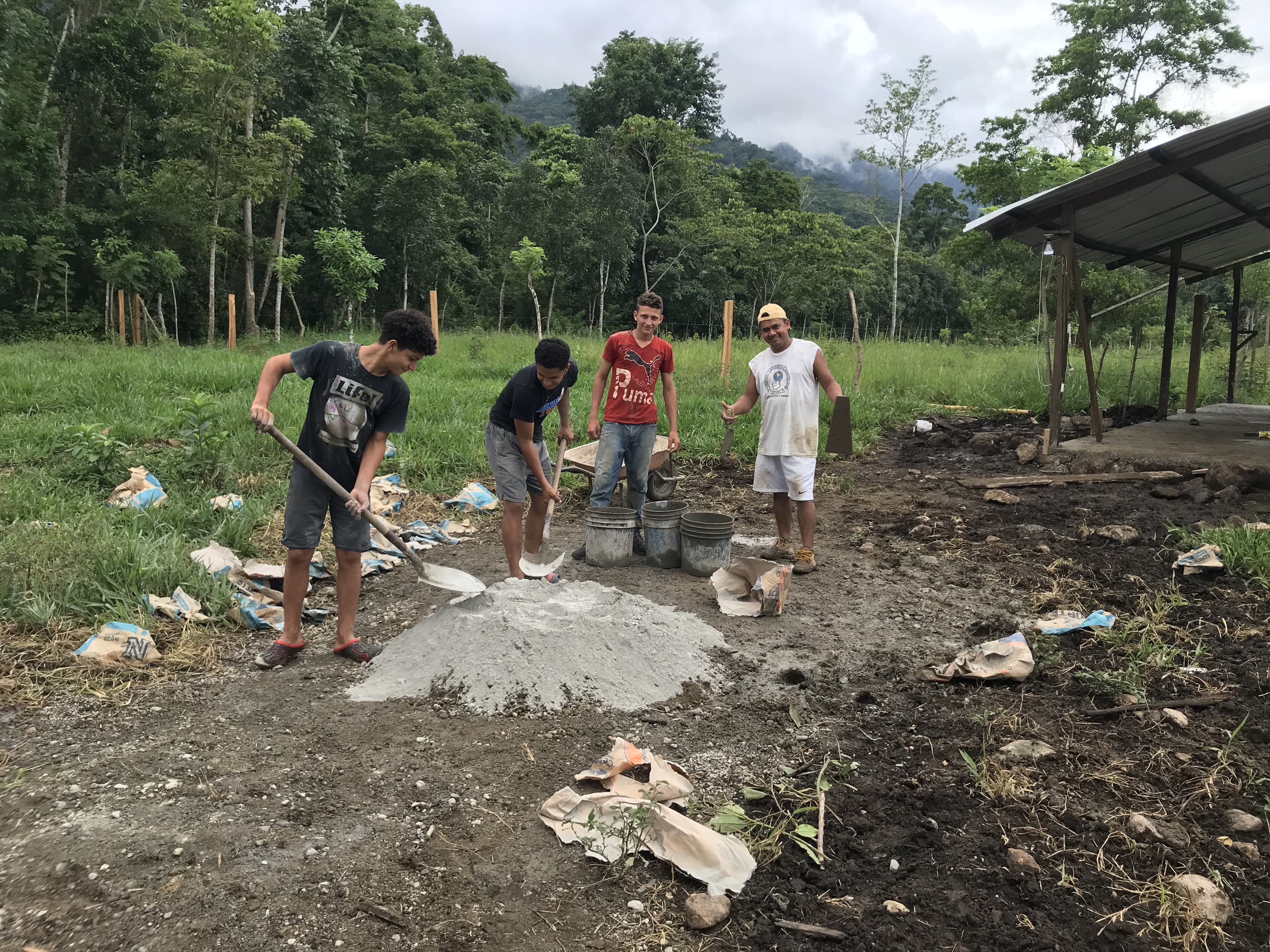 A team of local boys/men have been working with my husband Darwin in several small-scale maintenance projects around our ranch property for the past several weeks. Here they are laying a cement foundation for the cows’ stable.