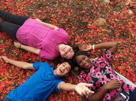 One of our highly dedicated  missionary-teachers (floral shirt) with two of our adolescent tutors who serve alongside of us in integral Christian discipleship and education