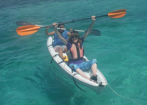Jackeline and I embarking on our wild kayaking adventure from one island to another. Little did we know just how difficult it would be, as the current was particularly strong that day as it threatened to carry us out to high seas! Arriving (and safely returning) from the arduous journey was probably the hardest thing either of us had done in quite some time! (We look so happy in this photo because we had yet to commence the journey and had no idea how hard it would be! The next day Darwin and our 16-year-old son Brayan tried completing the same journey, but they returned because Brayan got scared!)