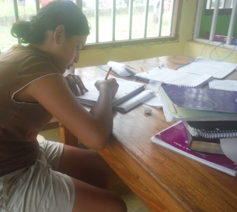 This is our 12-year-old daughter Gleny, who has been living in our family almost four years, giving a dynamic tutoring session with our two most developmentally-challenged kids, Gabriela (11) and Josue (9). Gleny is a fantastic teacher, and she loves working with little kids!