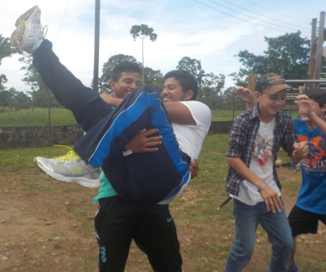 And, the best part of all, is that our teachers who serve as local Honduran missionaries participate right alongside of our foster children and students! 34-year-old Geraldina, Sandra’s mom, who serves in the community kitchen and general cleaning activities (because she hasn’t yet learned to read and write), had finished all of her duties early on Friday, so we invited her to participate right alongside of everyone else. She sent her daughter to run home and bring her some comfortable clothes to ‘play’ in (she was wearing a dress), and literally for the first time in her life she played. After a childhood (and early adulthood) of intense suffering, poverty, abuse and rejection, the Lord is restoring her even in an area as innocent (and oftentimes overlooked) as fun, healthy touch and intense, gut-wrenching laughter. She was laughing perhaps harder than anyone else — and this from a woman who used to be too timid to greet people and had never received hugs before she began working with us earlier this year (and now she receives several daily)!