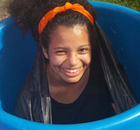 My husband Darwin and one of our foster daughters in a recent water balloon fight on our ranch