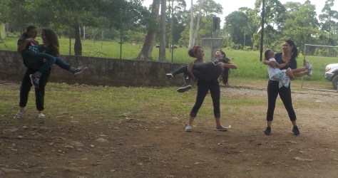 This is Geraldina (Sandra’s mom) in the process of the “backpack” position with her teammate Jackeline, one of our foster daughters. Two of our other daughters (Josselyn and Gaby) are in the background.