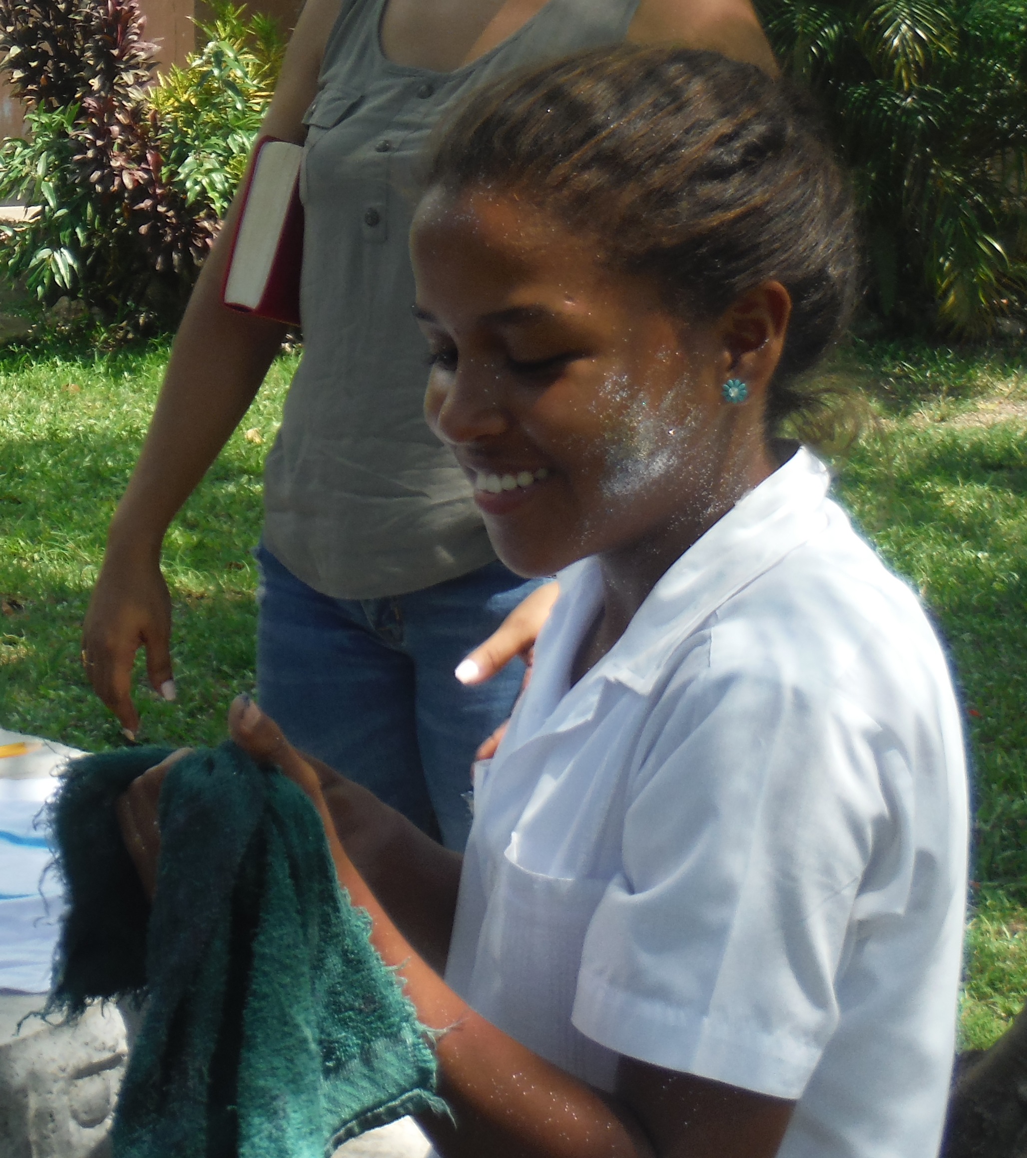 In addition to being the full-time 7th grade teacher, she has taken on the role of leading the weekly ‘Art Club,’ and the class’ kick-off a couple Fridays ago went phenomenally well. After organizing an in-class lesson on the primary and secondary colors, etc (a very basic topic but one that is unknown to the majority of youth from our rural neighborhood as they have never taken even an introductory art class before), she grabbed the white t-shirts, fabric paint and brushes and headed out to our front lawn with her Art Club participants to spend the afternoon decorating t-shirts (which will then be used as their ‘uniform’ for the club each Friday). Oh, and I believe there was some kind of glitter-filled balloon trap hanging from the ceiling of the classroom to begin the whole activity. Way to go, Miss Ligia!