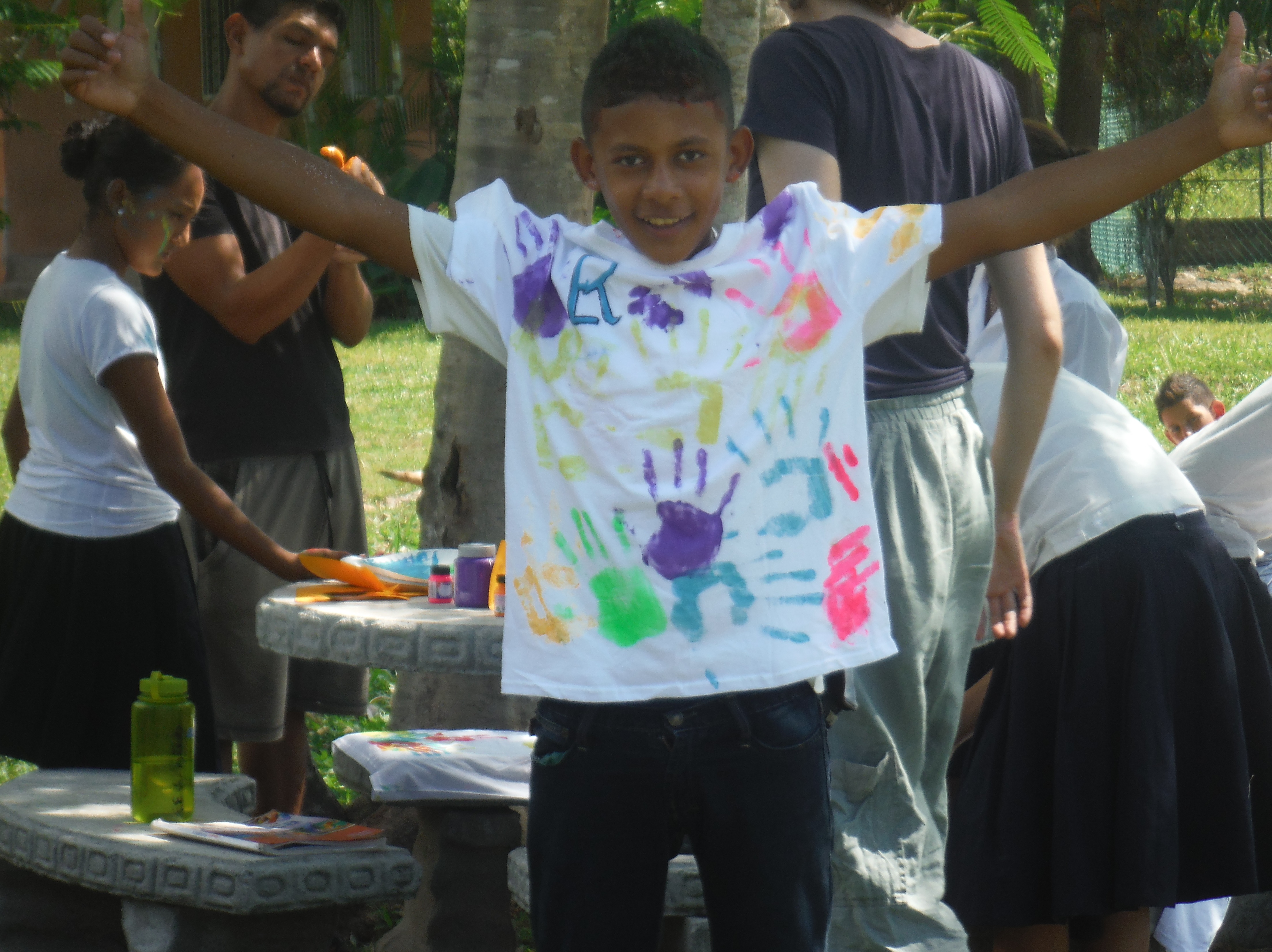 14-year-old Arlen, a local students we’ve known almost three years, as he poses with his newly-painted t-shirt