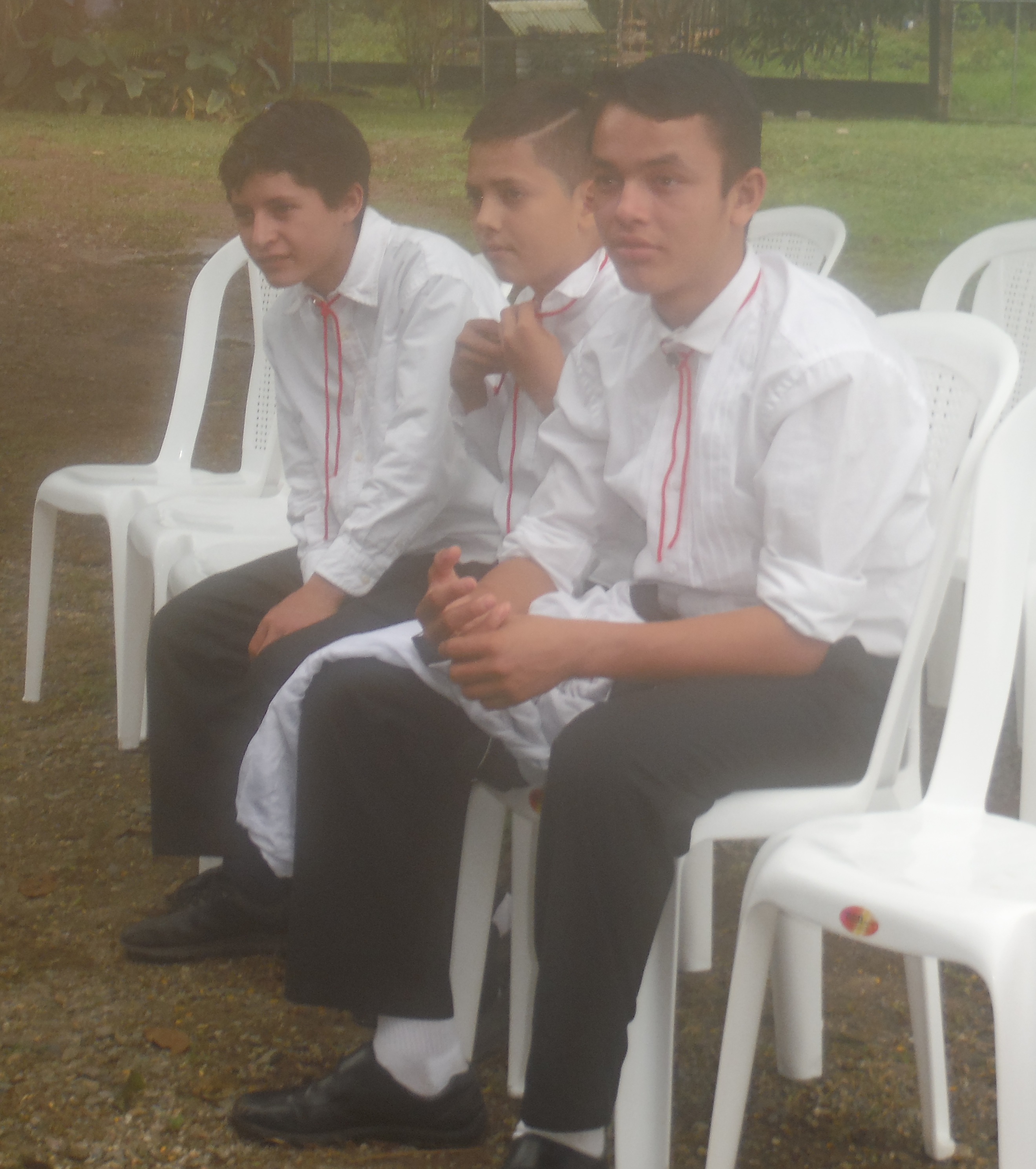 Here are three of our strapping young gentlemen getting ready for the big event. For teenage boys who are accustomed to wandering gravel roads in torn, dirty clothing and surviving year after year in suffocating poverty, getting ‘squeaky clean’ and all dressed up in formal attire to participate in an organized music concert (that they’ve been practicing for for months) is a really big deal. All three of them were baptized in October and have signed the enrollment papers to come back again next year.