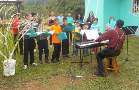 Our 13-year-old daughter Jackeline getting ready to sing and play piano. She passed fifth grade with flying colors in a local private school and is currently doing sixth grade (the last grade in elementary school according to the Honduran educational system) right now during school vacation so that she will be able to enter 7th grade (the first year of high school) in our discipleship program in February. We are very (very, very) proud of her as she has experienced a dramatic transformation after having spent a very difficult first year with us in 2015 that was riddled with laziness, depression and very poor decision-making. Keep it up, girl!